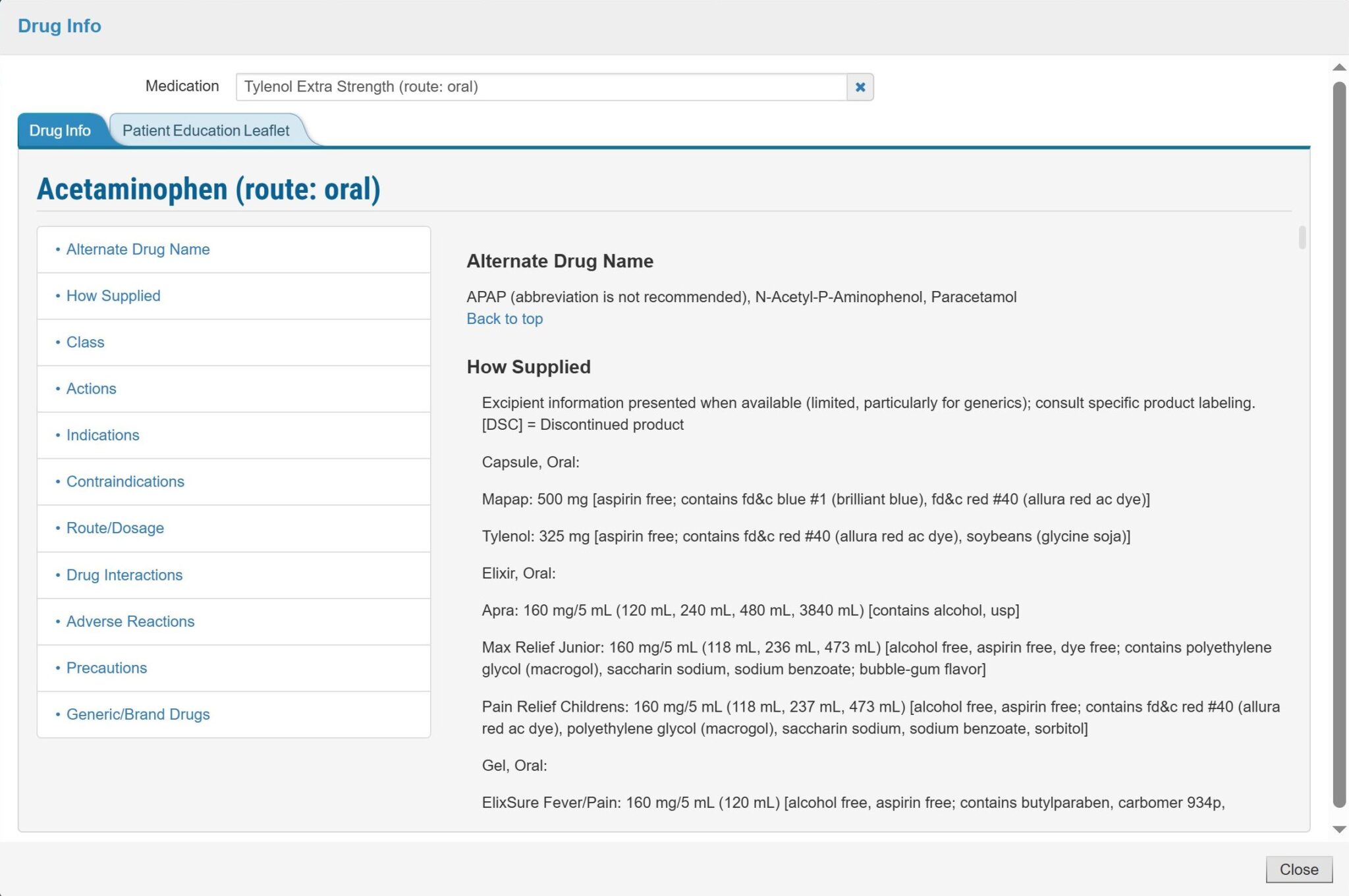 - Drug-to-Drug Interaction Data: Critical alerts to prevent adverse drug events and enhance patient safety.
